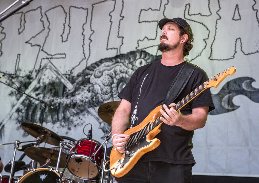 First out was Kylesa from Georgia. They are a great sludge metal band, and even if their set startet a little slow, the energy kept coming, and the second half was good and dirty metal. The biggest problem, was the sun and the early start at 3 PM, which meant few people and not the best setting for metal.