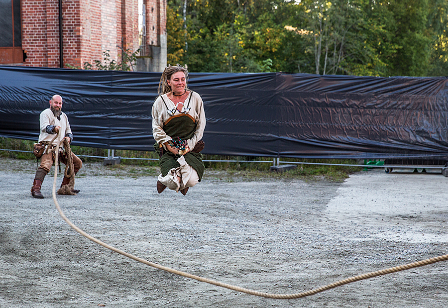 I have been to many metal festivals and concerts, but never to viking parties. Here they came, dressed in clothes in the style of the Vikings, and showed how the Vikings lived a thousand years ago. We got competitions, tug of war, and as the last performance before the bands entered the stage, we got a very realistic looking Viking battle with swords and axes. There are many viking societies in Norway, and several of these were represented at the blót. It also seemed like the metal fans also liked the viking activities.