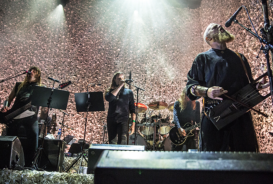 The festival closing act was Skuggsjá. The composition was commisioned from Ivar Bjørnson and Einar Kvitrafn Selvik for this occasion, and was performed by both their bands. “Skuggsjá is a work that not only contextualizes the harder music’s role in the democracy in Norway in 2014, but also pull threads from our ancient musical history and to the harder music’s position as perhaps Norway`s most important cultural export.” (from the program folder).