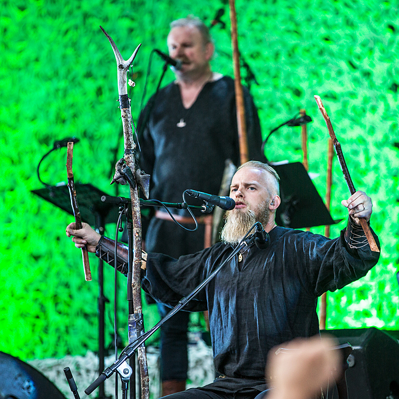 Wardruna was the first band out on the big stage at night. They are a band that is based upon the old Norse spiritualism and also the runes by the Elder Futhark. They have existed for ten years and have released two albums, both based on a set of runes. The band was started by Einar Kvitrafn Selvik, Linda Fay Hella and Gaahl. In their music they combine old Norse instruments with modern electronics to make a hypnotizing ground for the lyrics sung by Kvitrafn, Gaahl and Hella.