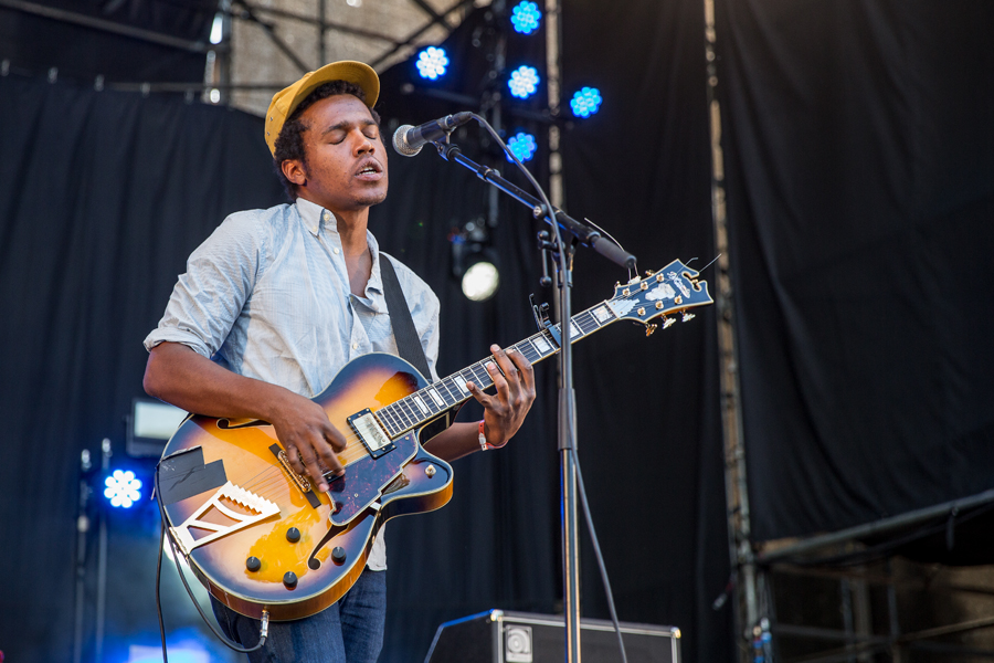 Benjamin Booker was next at Vindfruen. He is a blues and garage rocker, playing with his trio, the purest form of rock: guitar, bas and drums. He released his self-titled debut album in 2014, after having released an EP, Waiting Ones, in 2012. On stage he is energetic, his sound is gritty with distorted guitar, and his music is no frills, straight forward rock with heavy blues influences.